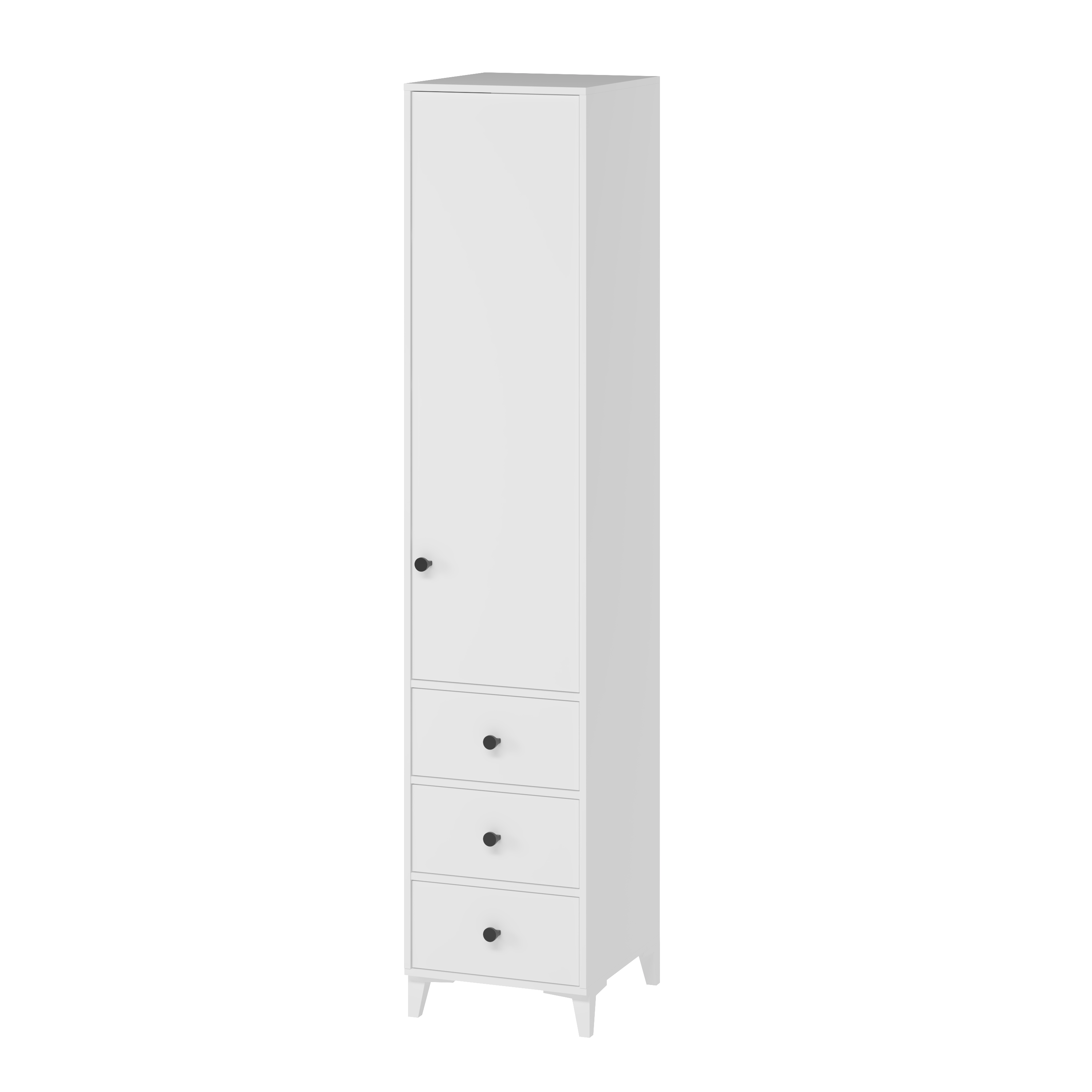 В пенал встроены три выдвижных ящика на направляющих скрытого монтажа с доводчиками.