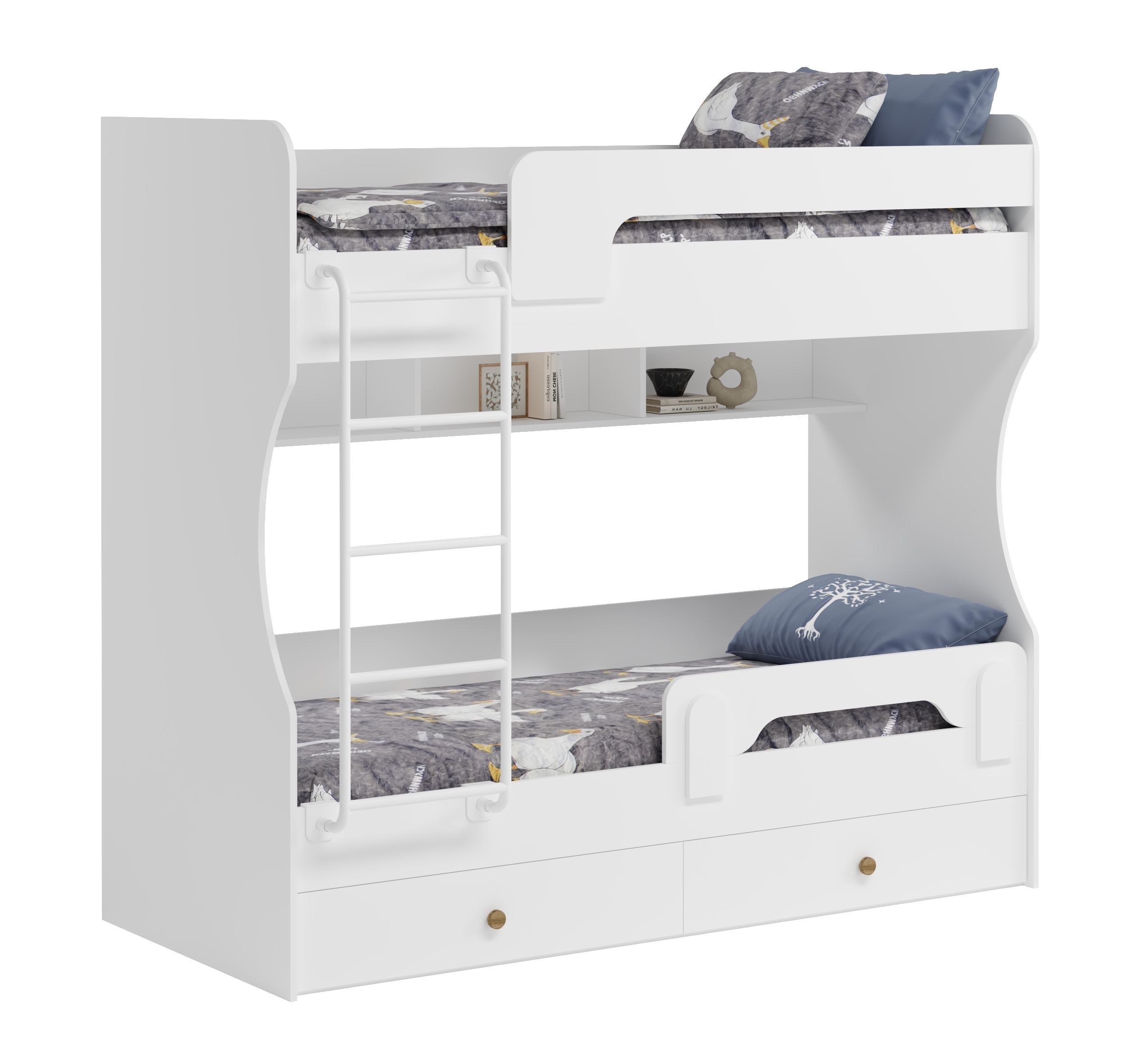 Двухъярусная кровать в белом цвете идеальна для любых интерьеров.