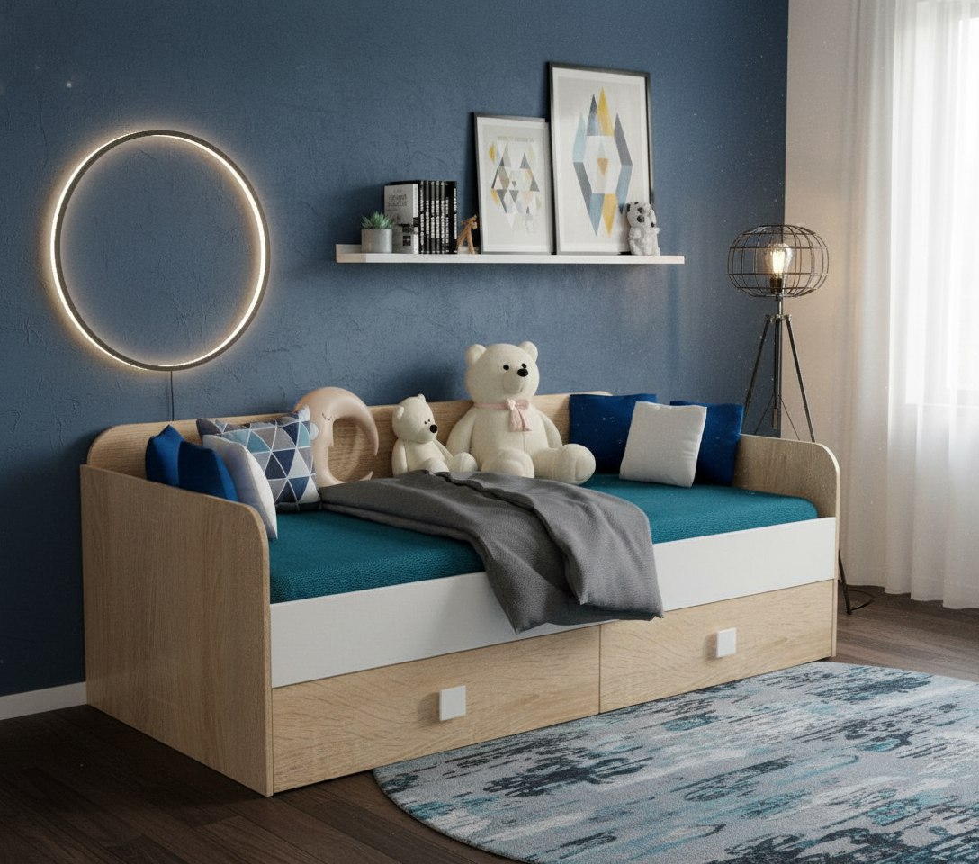 Вместо них - цельный и прочный настил из ЛДСП, который выдерживает сверхвысокую нагрузку и позволяет расположиться даже взрослому с ребенком.