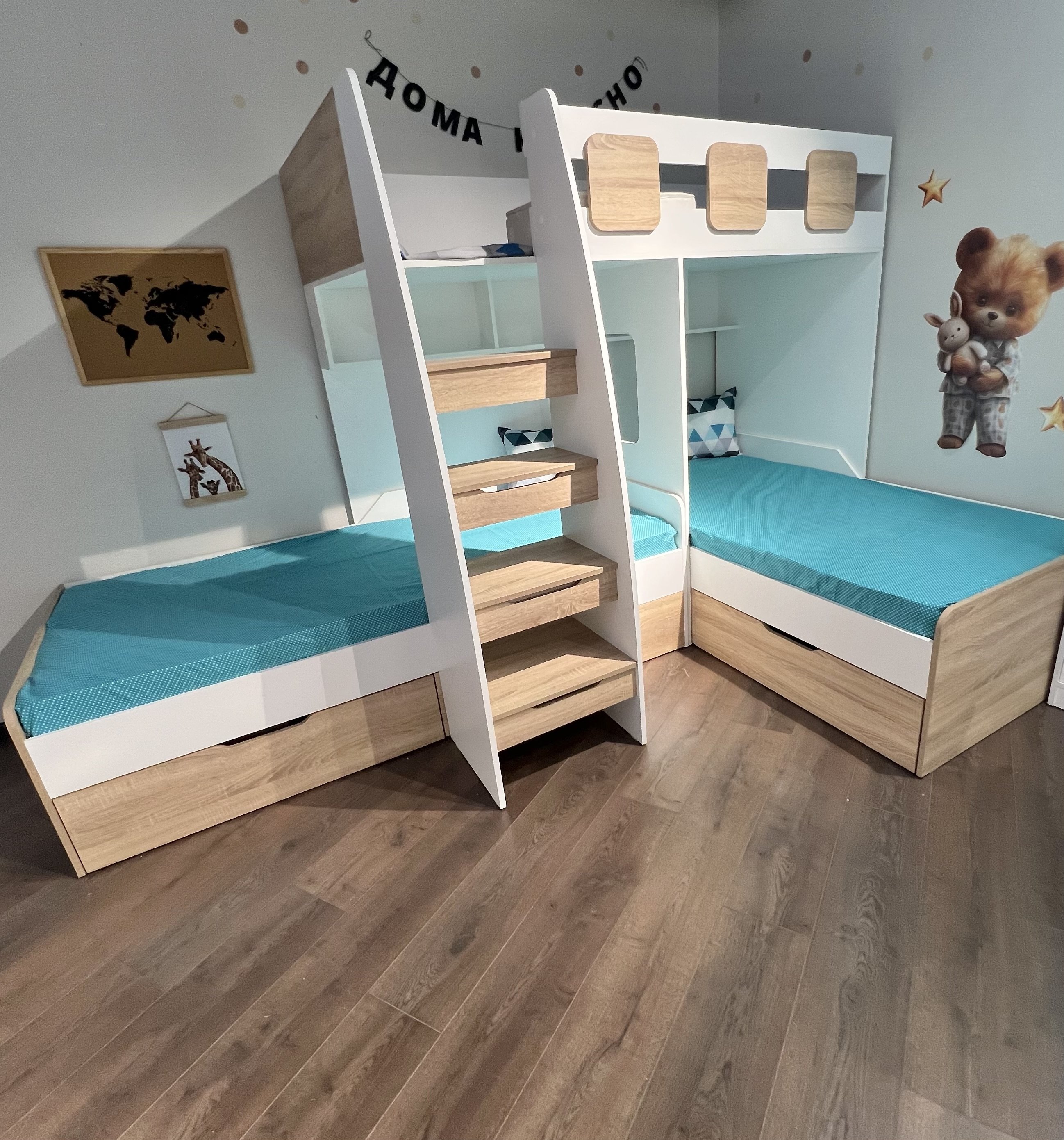 Высокая нагрузка на спальные места. Прочные ящики! Высокий, безопасный борт |